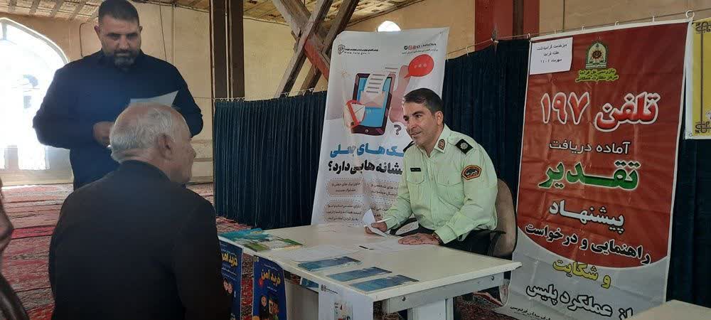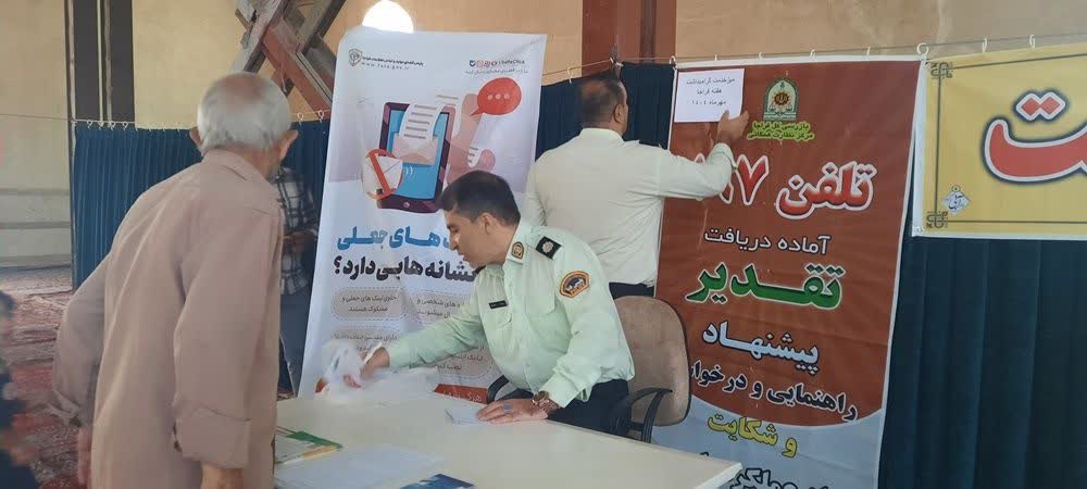 در نخستین روز از هفته انتظامی با شعار”پلیس مقتدر، ولایت مداری، حفظ ارزشهای اسلامی ” نمایشگاهی با موضوع “امنیت اجتماعی” در راستای پیشگیری از آسیب های اجتماعی در محل برپایی نماز جمعه توسط معاونت اجتماعی فرماندهی انتظامی شهرستان برای نماز گزاران برپا شد.
