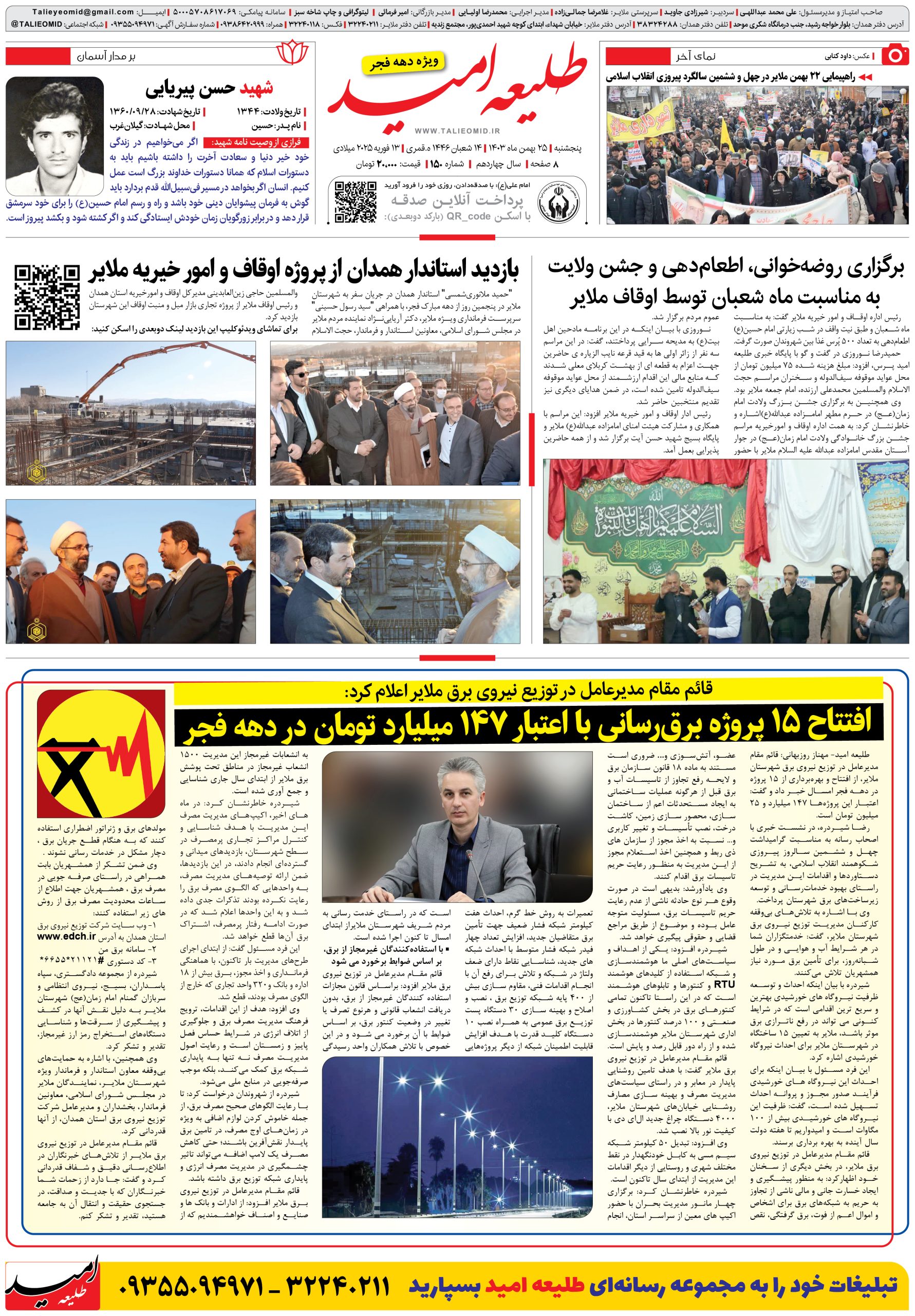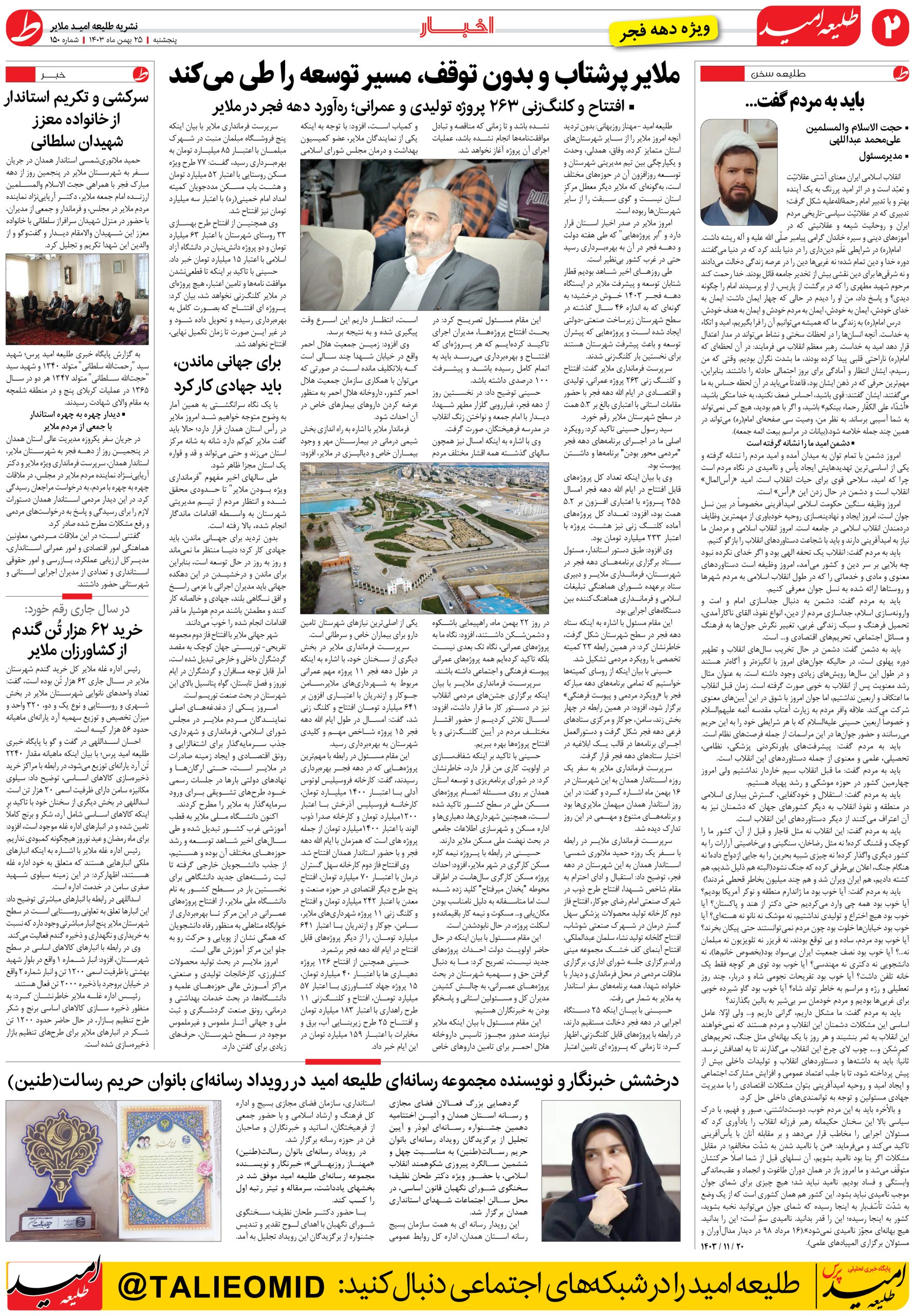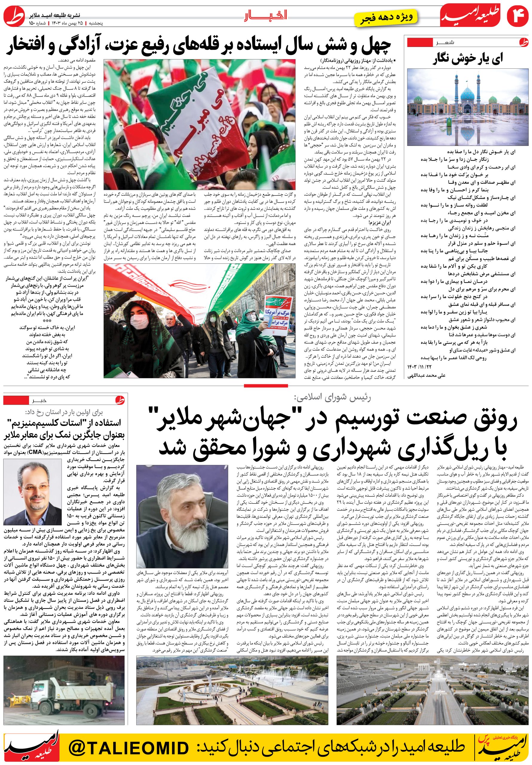 شماره 150 “طلیعه امید” - ویژه دهه فجر - طلیعه امید پرس - پایگاه خبری