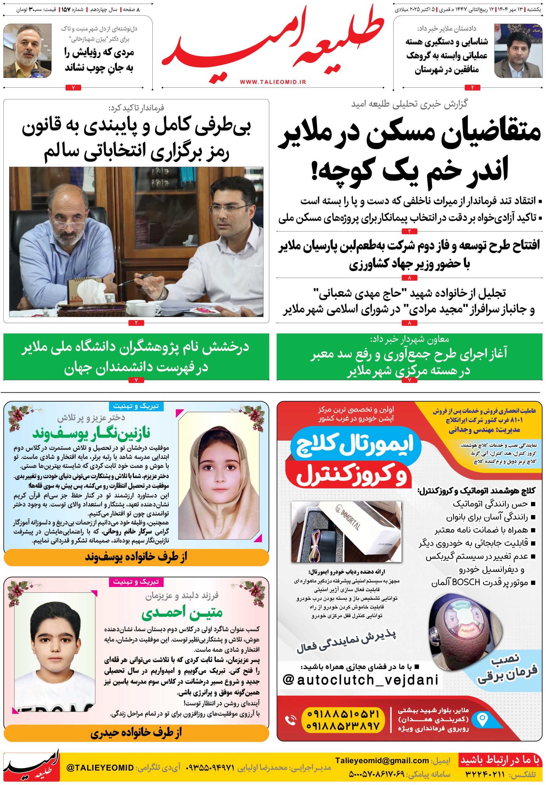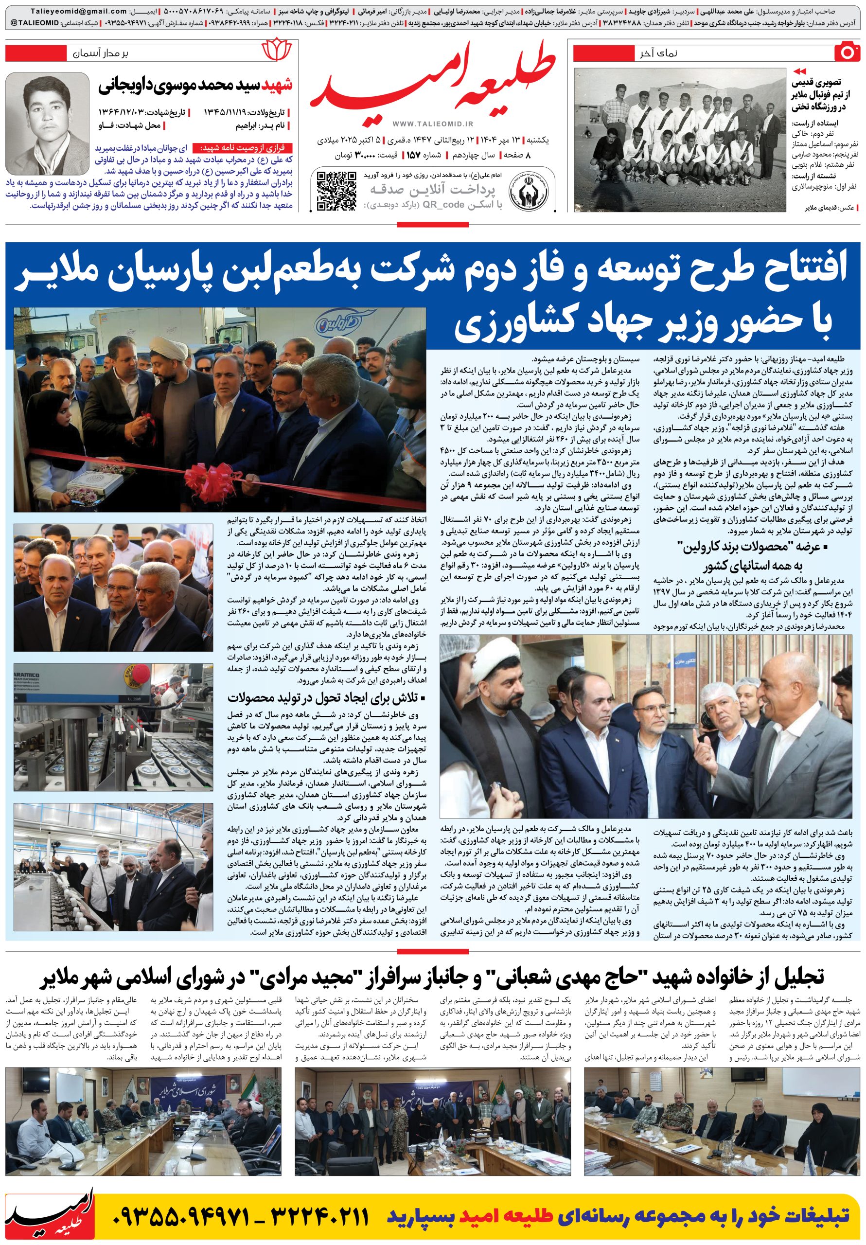 ■پایگاه خبری طلیعه امید talieomid.ir■دانلود فایل پیدیاف شماره ۱۵۷ طلیعه امید // انتهای پیام //