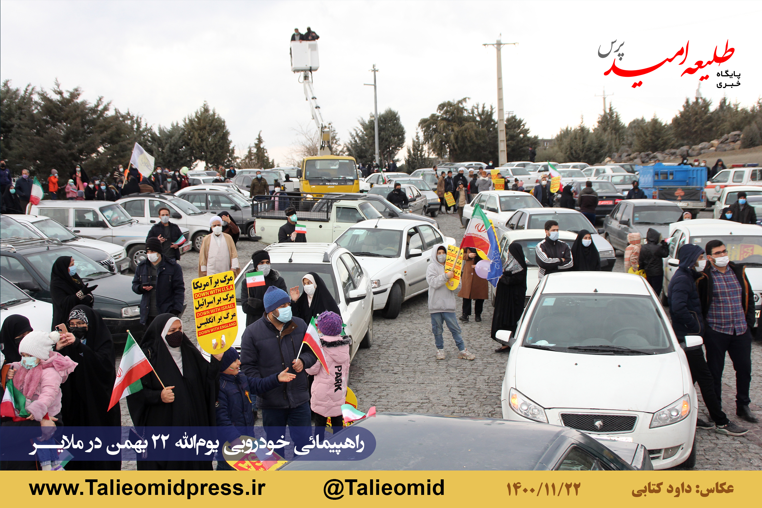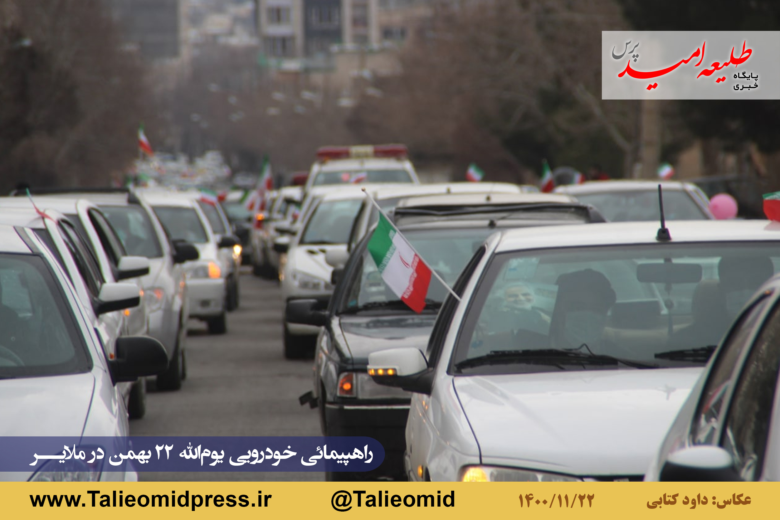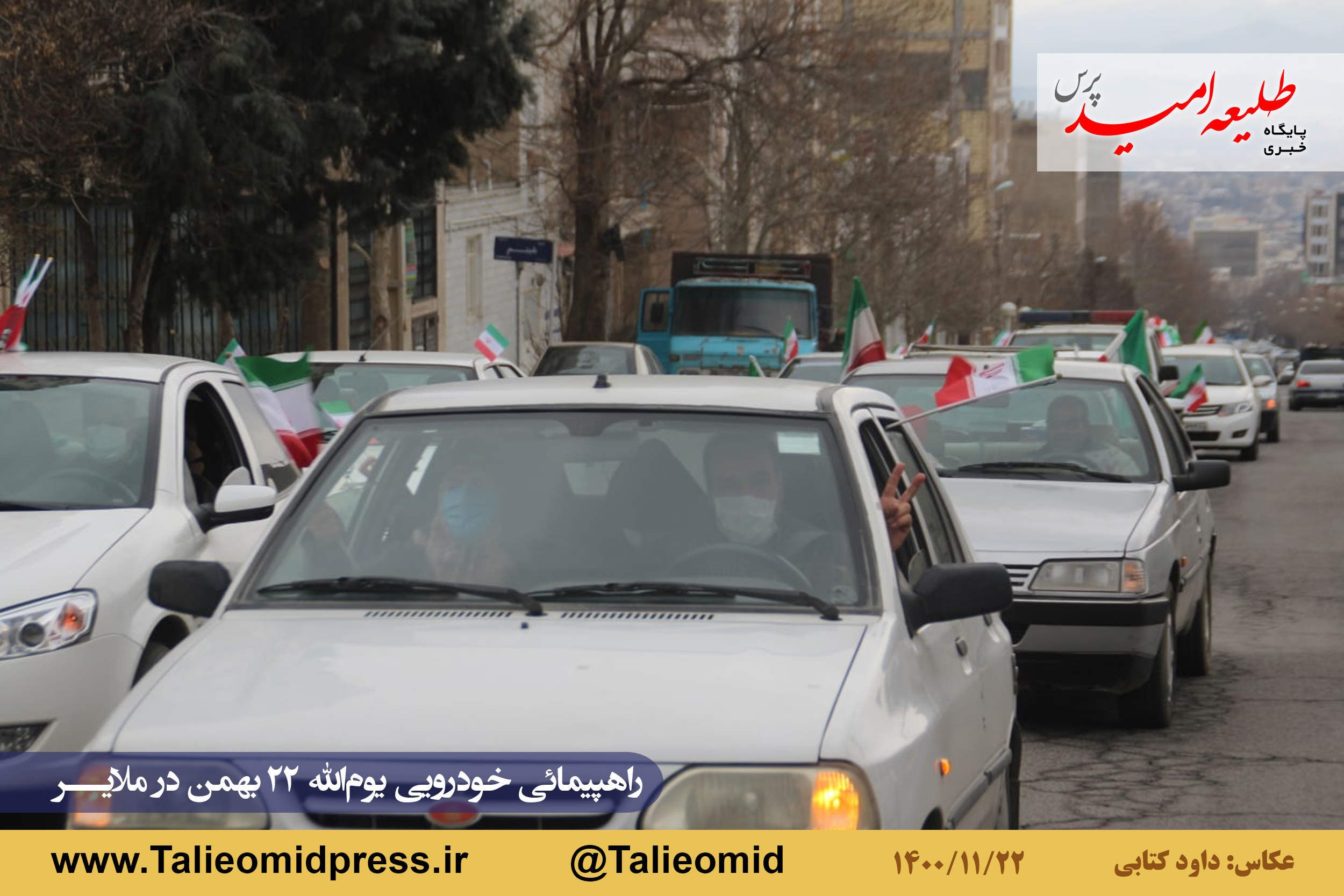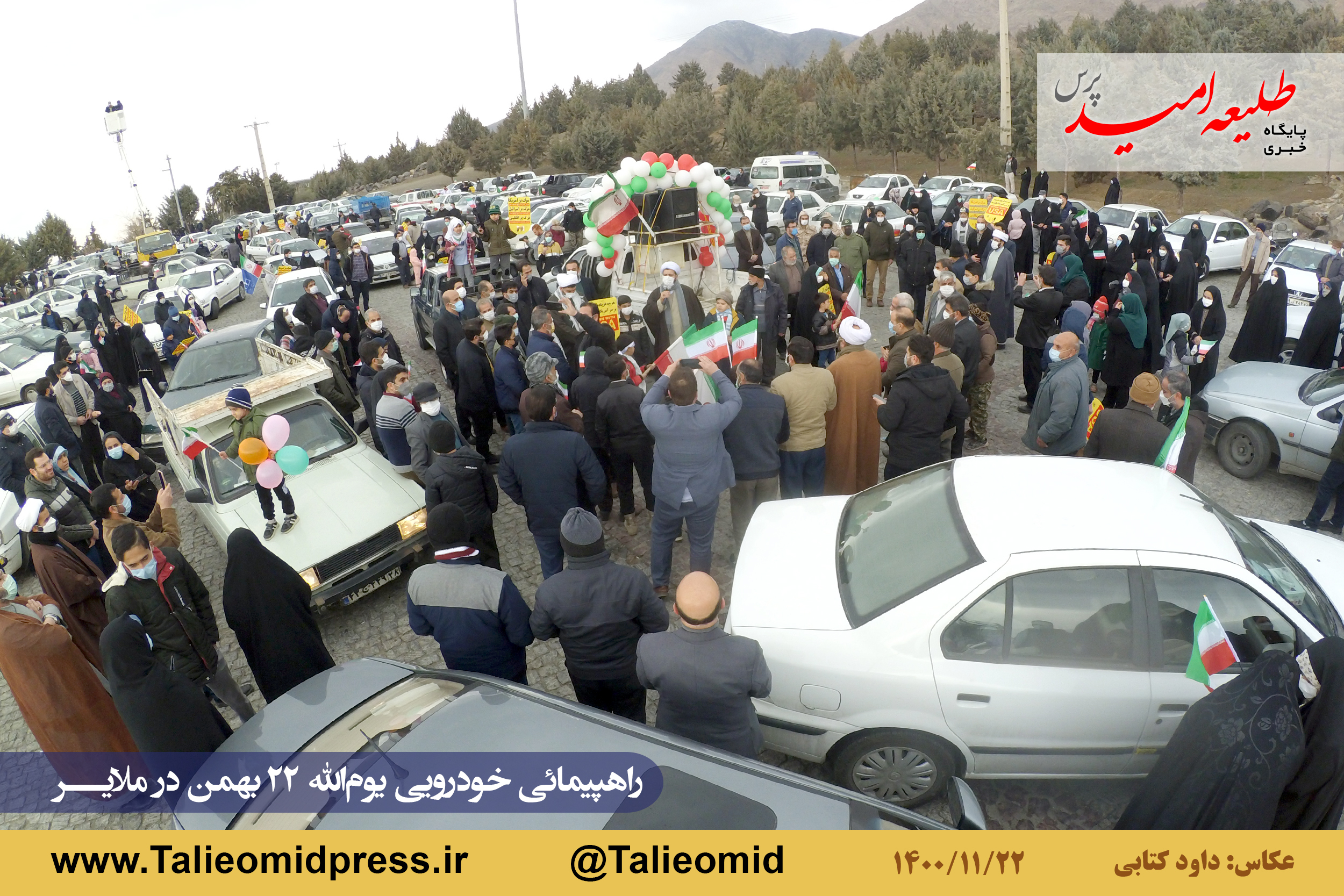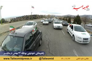 راهپیمائی خودروئی یومالله ۲۲ بهمن در ملایر ساعت ۹ونیم صبح از مزار شهدای گمنام در میدان شهدای گمنام(امامزاده عبدالله) آغاز و به مزار شهدای گمنام در بام ملایر ختم شد.
