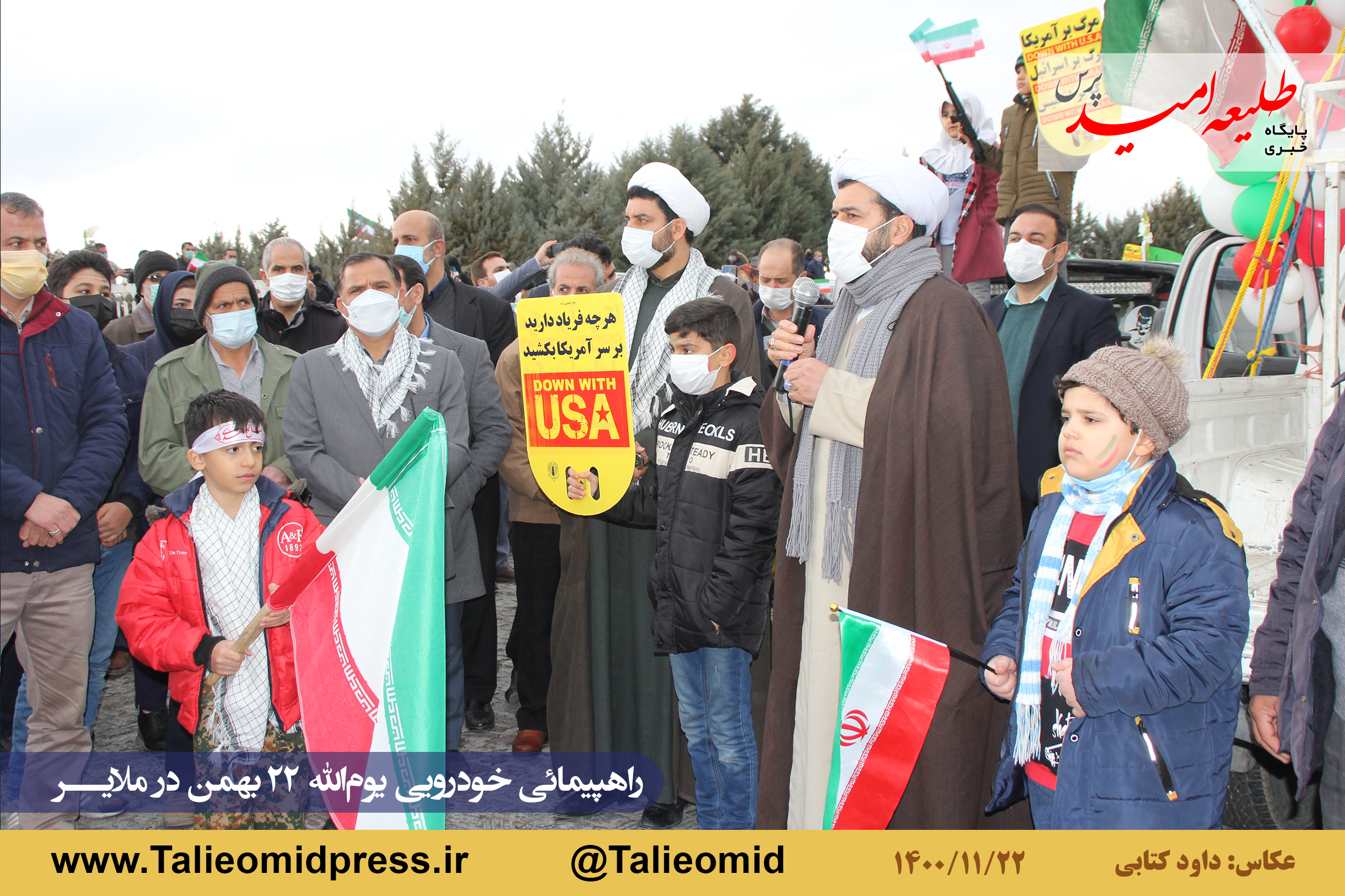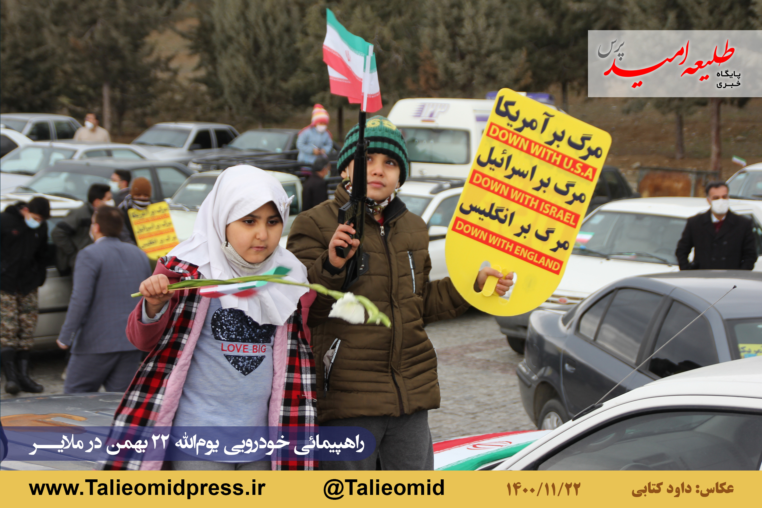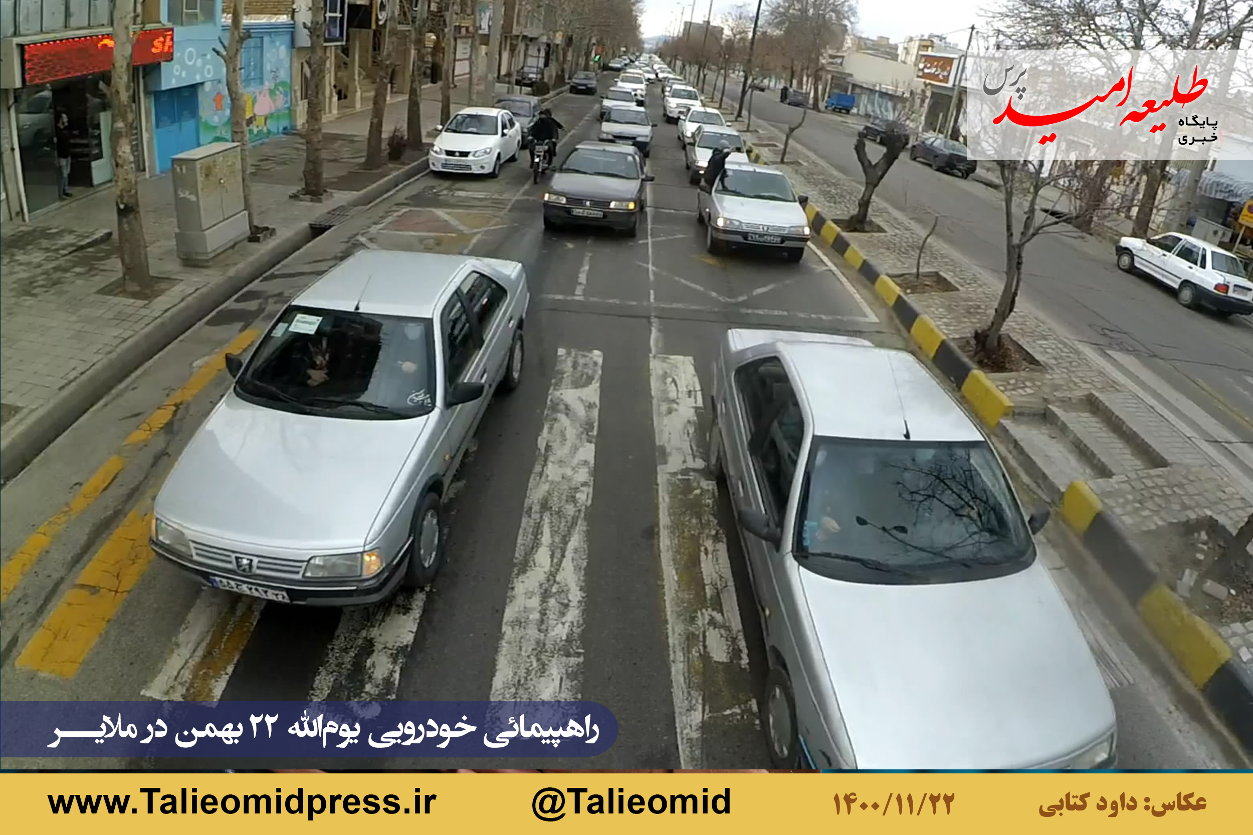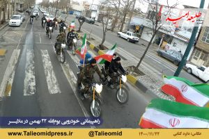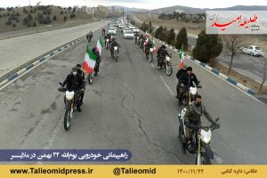 راهپیمائی خودروئی یومالله ۲۲ بهمن در ملایر ساعت ۹ونیم صبح از مزار شهدای گمنام در میدان شهدای گمنام(امامزاده عبدالله) آغاز و به مزار شهدای گمنام در بام ملایر ختم شد.