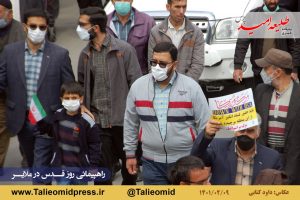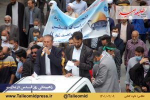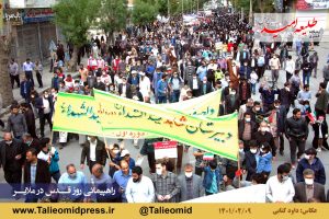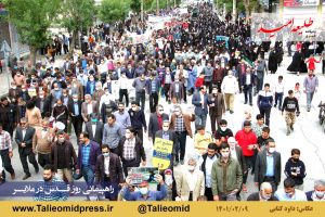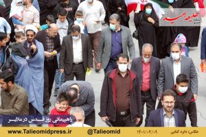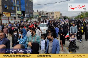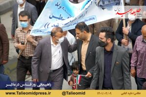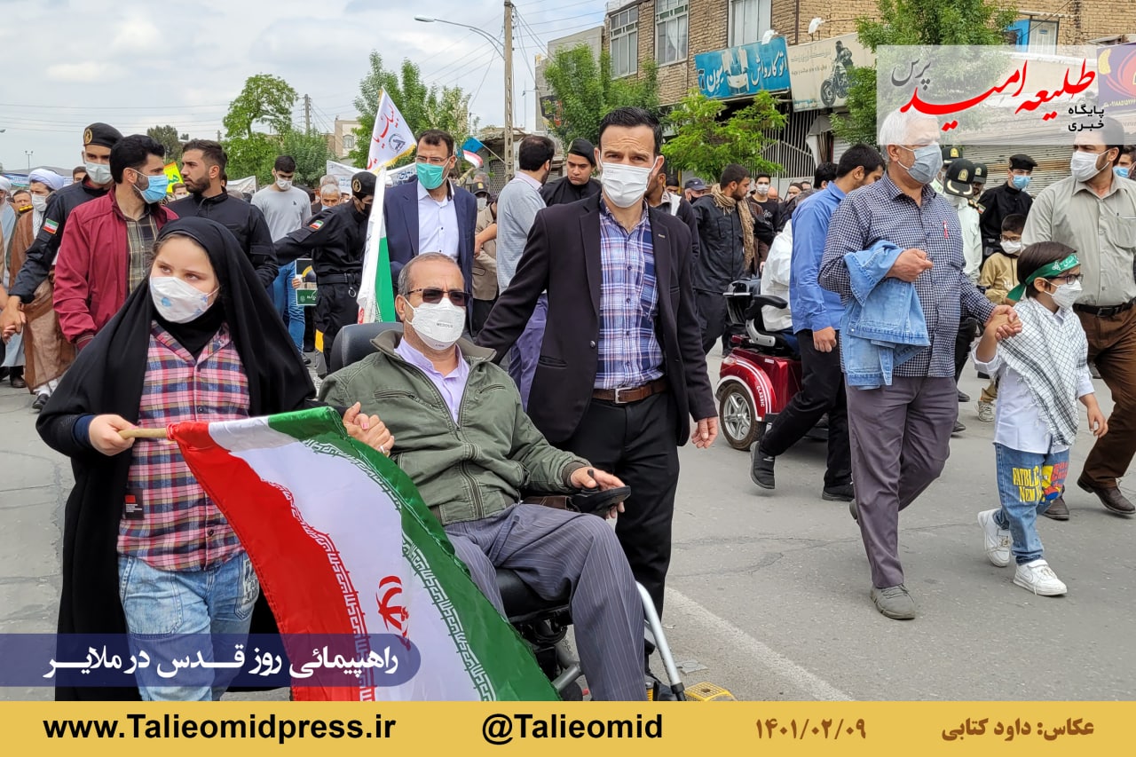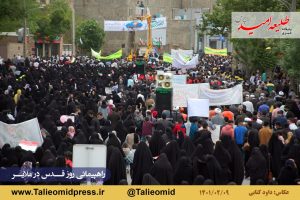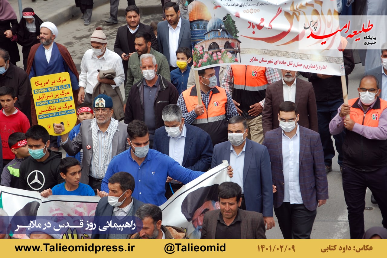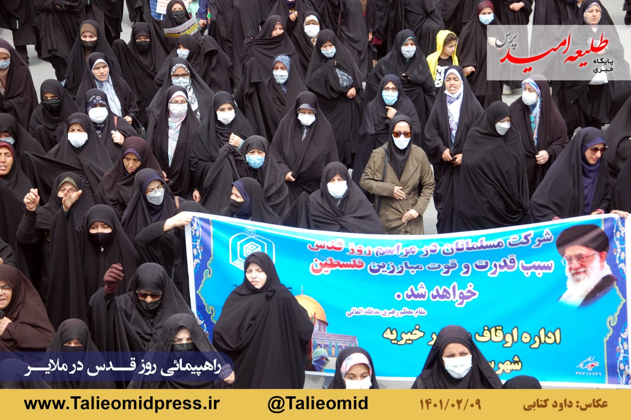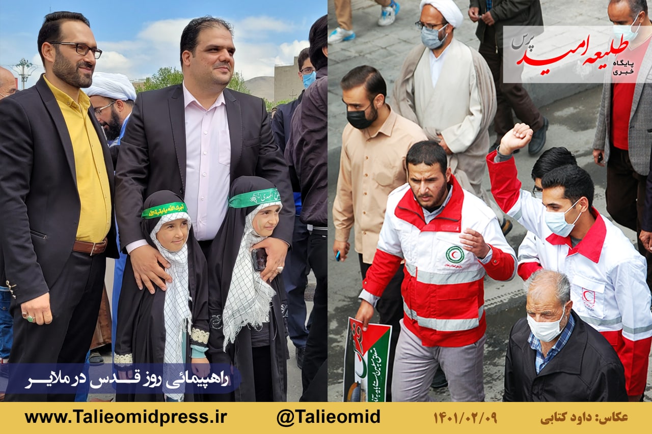 ملایر – پایگاه خبری طلیعه امید پرس: مردم روزه دار شهر ملایر با حضور پرشور در راهپیمایی یوم الله قدس، در حمایت از مردم مظلوم و مقتدر فلسطین برگ زرین دیگری در دفتر تاریخ پرافتخار این شهر را به ثبت رساندند.